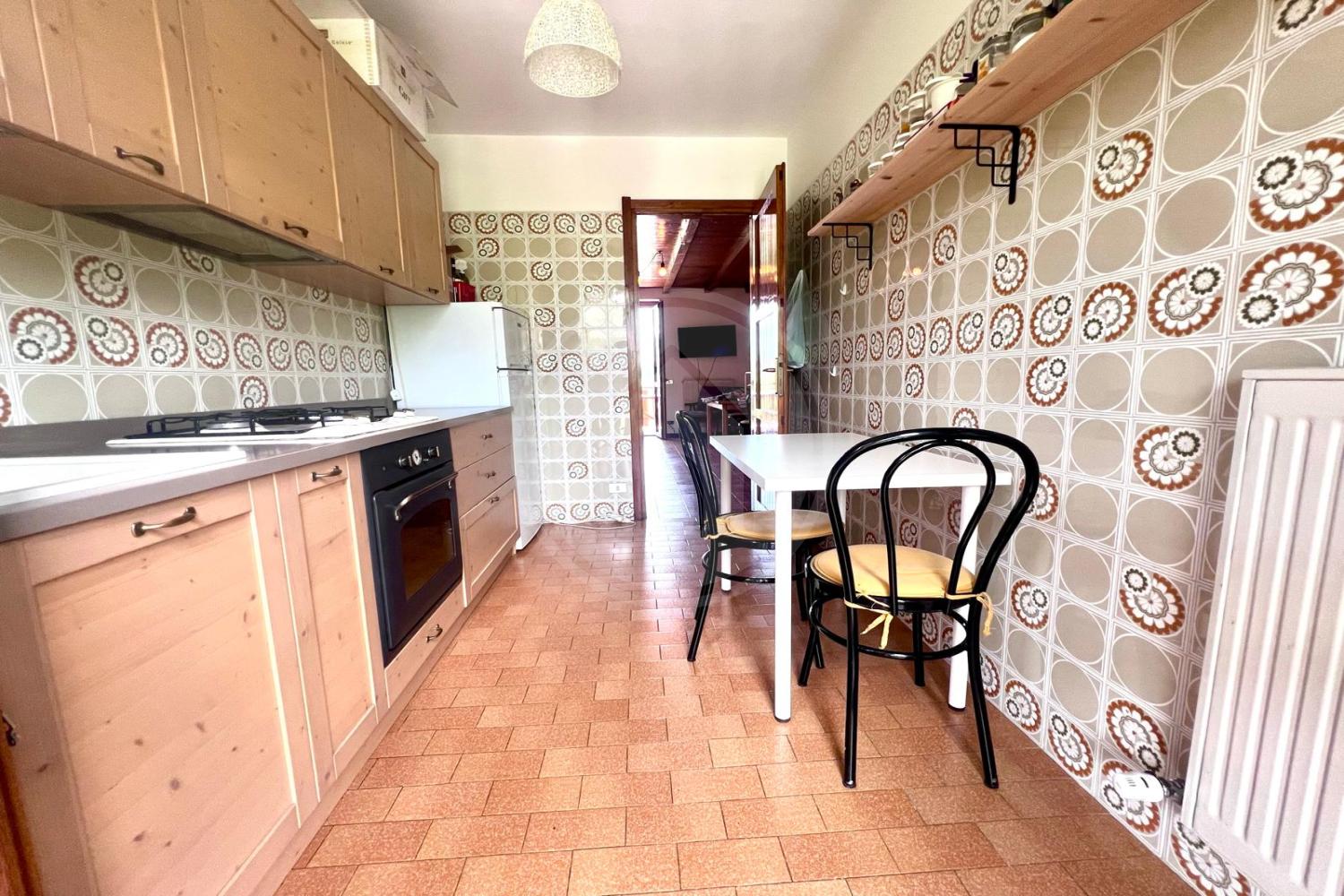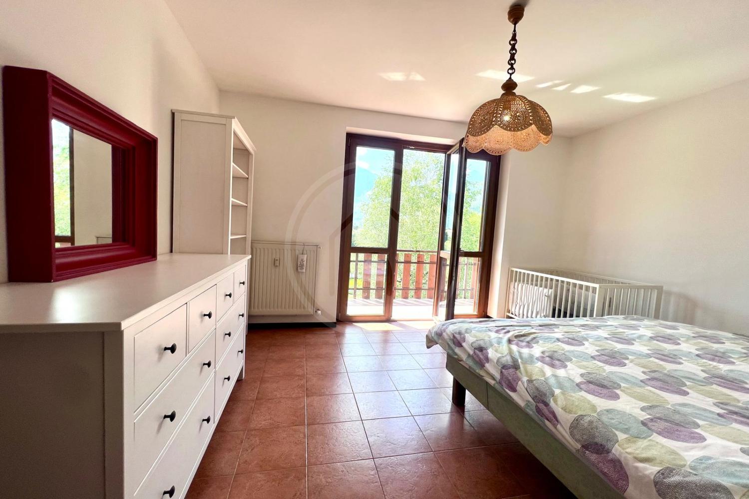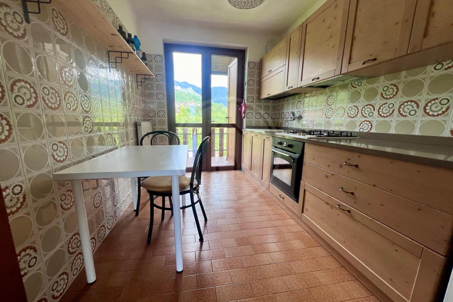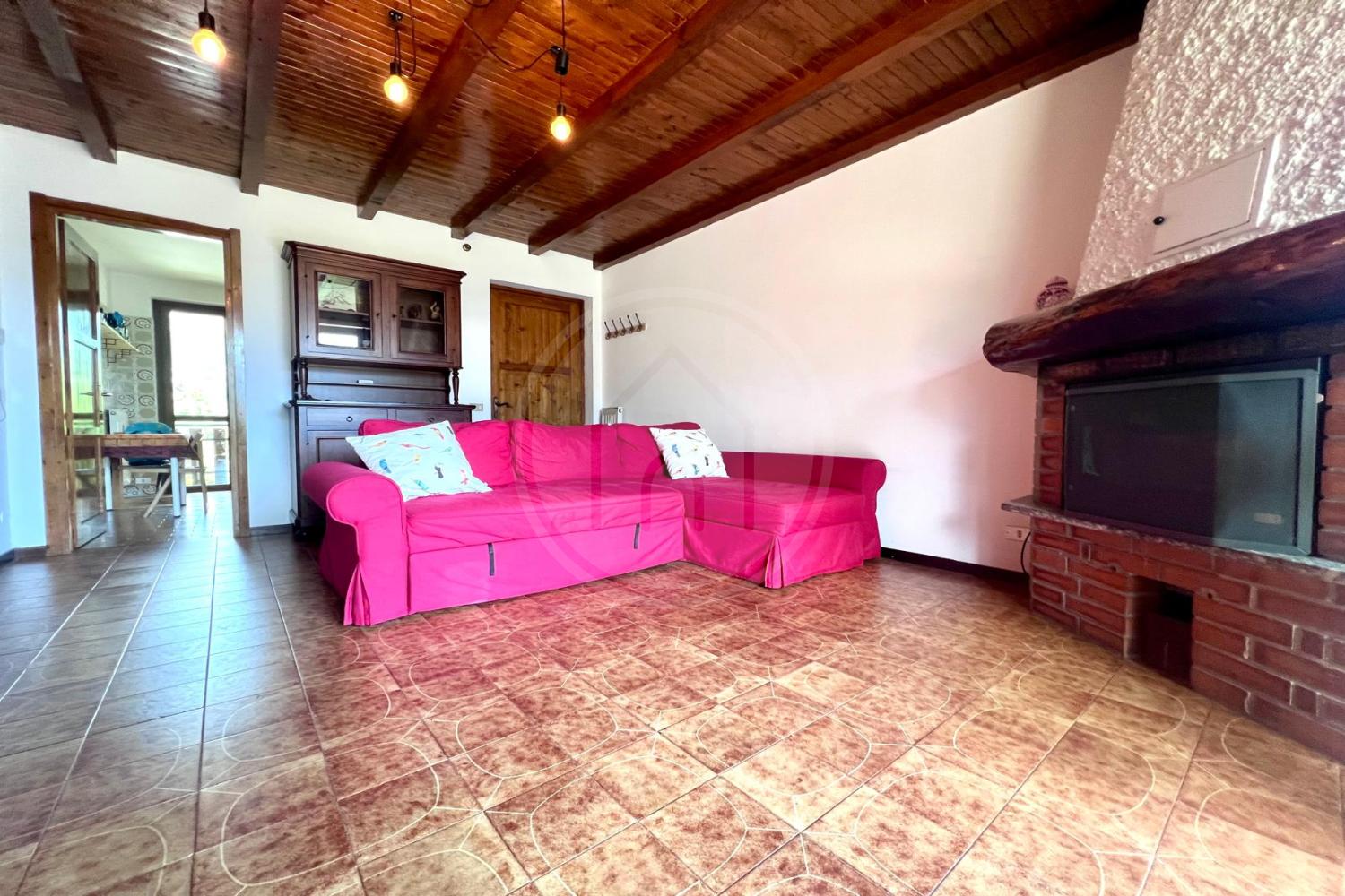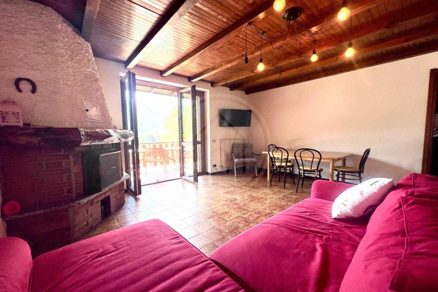 L'immobile è composto da un ampio soggiorno con camino, dove potrai trascorrere serate indimenticabili, con uscita su un grande terrazzone ideale per pranzi all’aperto o momenti di relax immersi nella natura. La cucina abitabile, mentre le due camere spaziose ti garantiscono il massimo comfort. Completa la proprietà un bagno funzionale, cantina e box per la tua comodità.